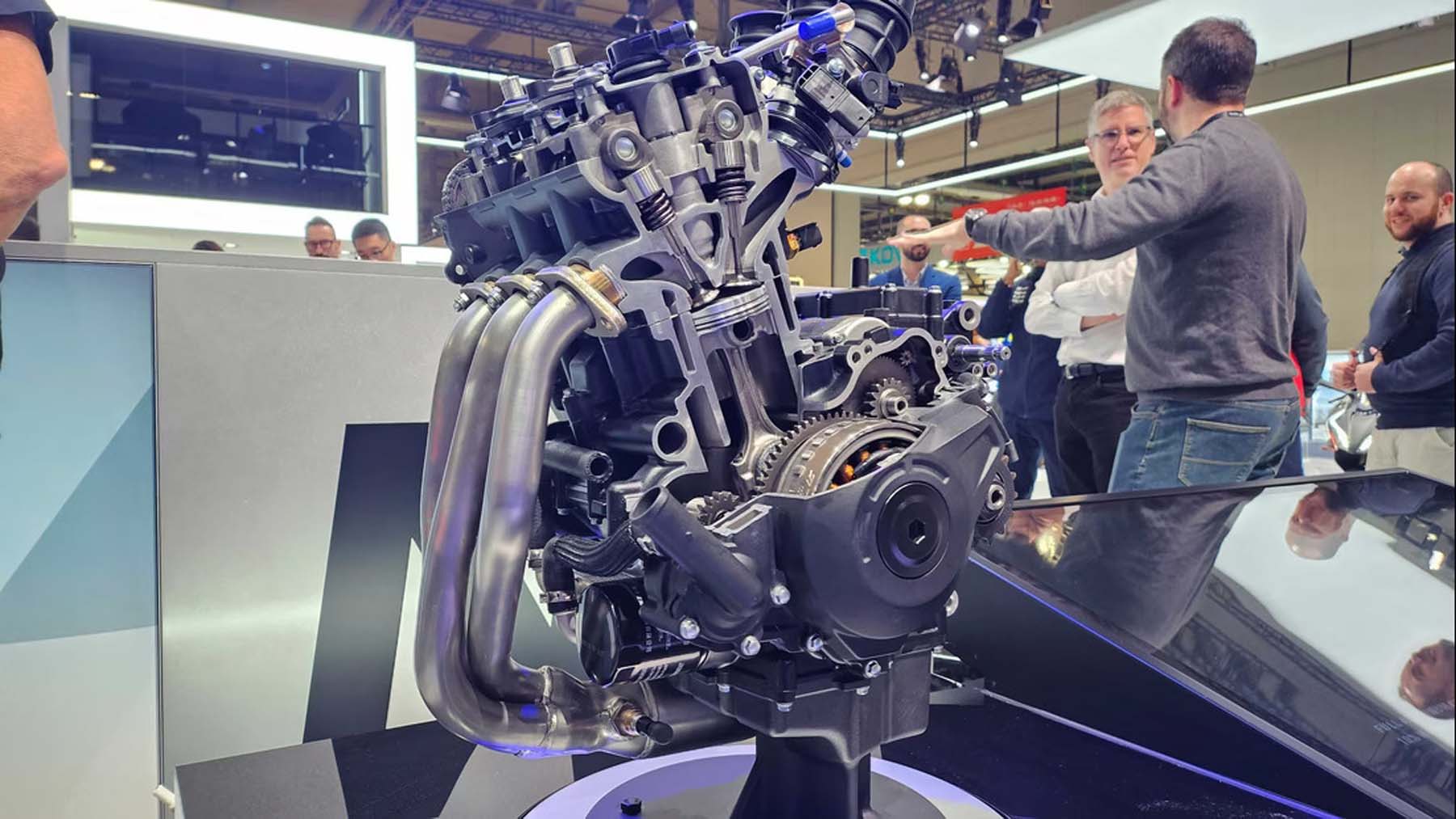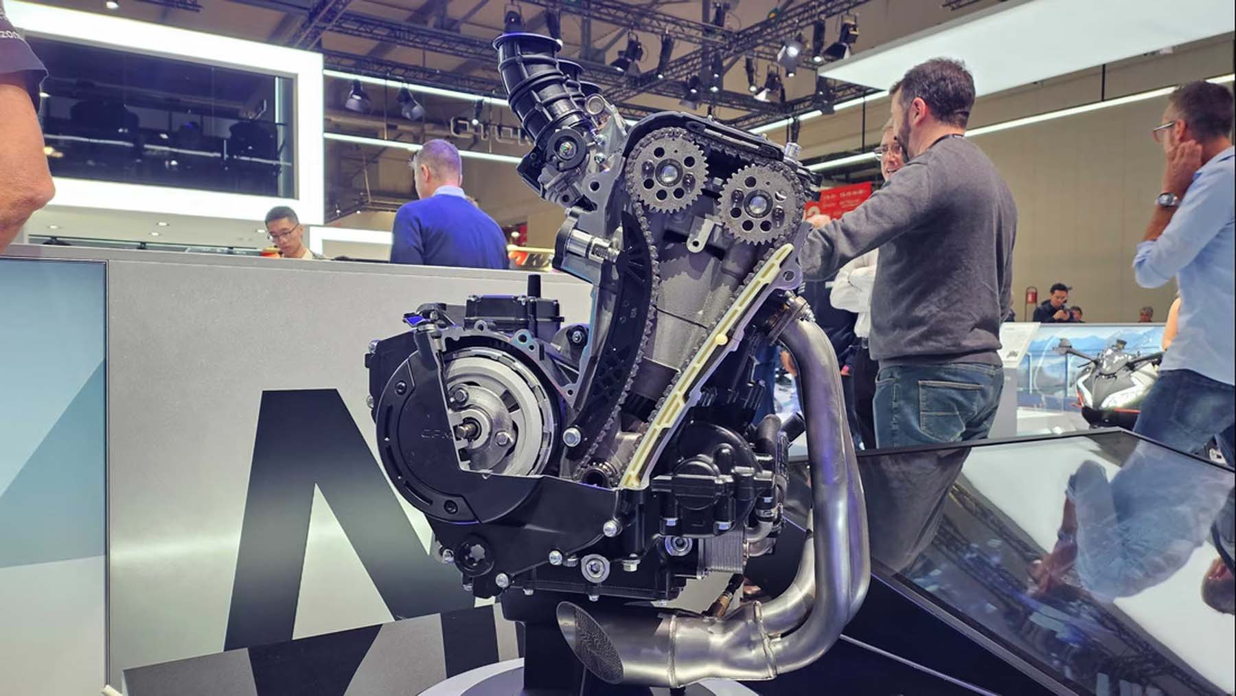 Im Rahmen der EICMA 2023 war die Technik des Reihendreizylinder-Motors von CFMoto bereits im Detail zu bestaunen: klassische 120 Grad Hubzapfenversatz, zwei obenliegende Nockenwellen (dohc), vier Ventile pro Zylinder und Tassenstößel. Mit angeblich 54 Kilogramm ist dieser Triple einer der leichtesten seiner Art. Und Bosch liefert die Saugrohreinspritzung dazu.