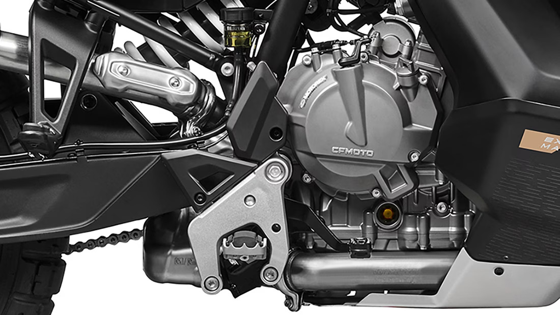 Als Antrieb für die CFMoto 800 MT-X kommt der von KTM entwickelte Reihenzweizylinder-Motor Typ LC8c zum Einsatz. Wie bei der KTM 790 Adventure mit 799 Kubik und mit maximal 95 PS (70 kW), hier bei 8.500/min, sowie mit 87 Nm Drehmoment bei 6.750/min. Bisherige 800 MT-Modelle bieten mit 91 PS (67 kW) und 75 Nm etwas weniger Schub. Bei der MT-X stehen 3 Modi zur Auswahl: Standard, Rain und Offroad. Dazu gibt CFMoto 192 km/h Höchstgeschwindigkeit an, wobei der circa 1.530 mm lange Radstand stabilisierend wirken dürfte.