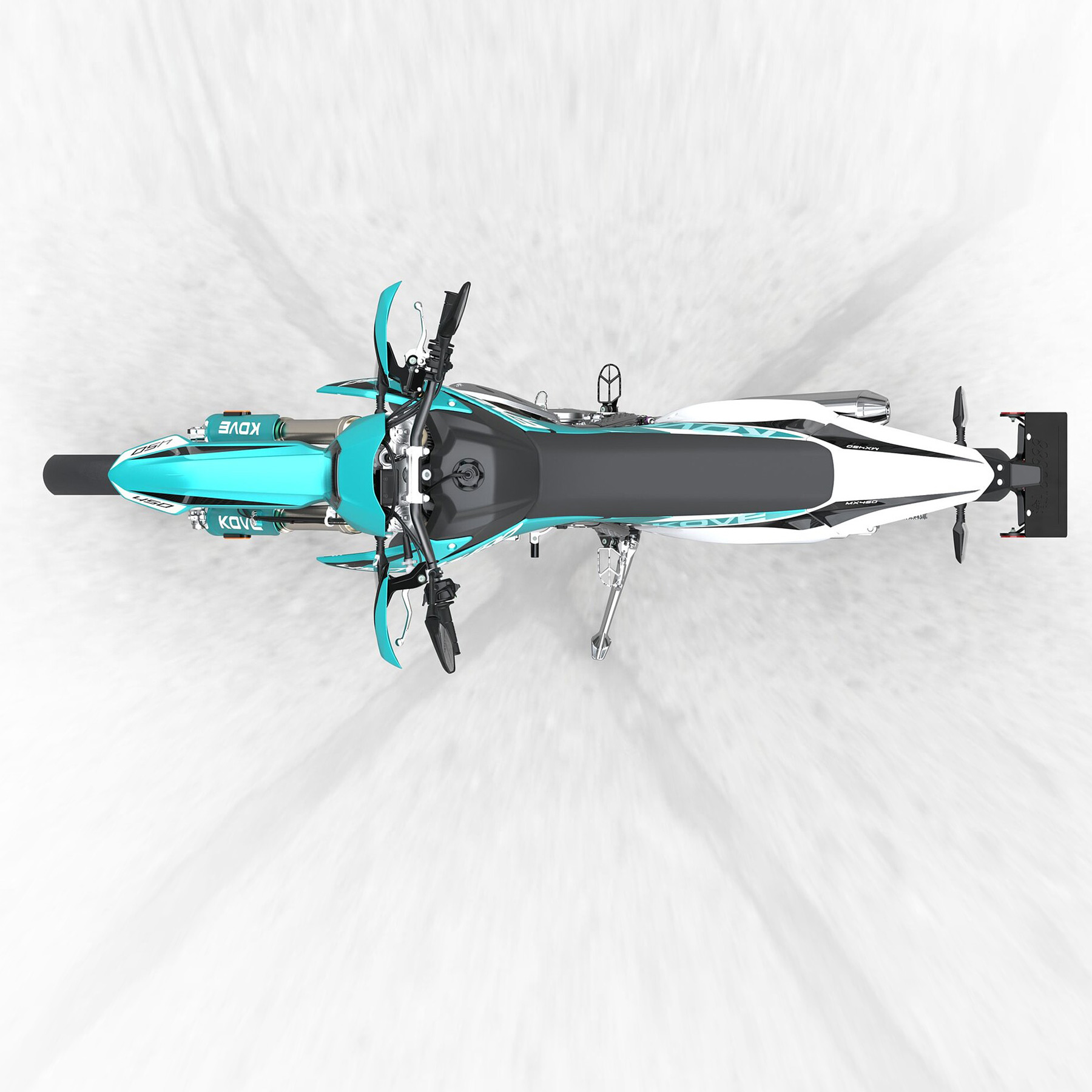 Gebremst wird mit Komponenten von Taisko: vorne eine Einzelscheibe mit Doppelkolben-Schwimmsattel, hinten eine Scheibe mit Einkolbensattel. Für zusätzliche Sicherheit ist ein Dual-ABS-System an Bord, das beide Räder überwacht. Auch bei der Beleuchtung zeigt sich die MX450 Enduro modern: Voll-LED-Scheinwerfer, Tagfahrlicht, LED-Blinker und ein LCD-Cockpit gehören zur Serienausstattung. Die Energieversorgung übernimmt eine leichte 2,3-Ah-Lithiumbatterie.