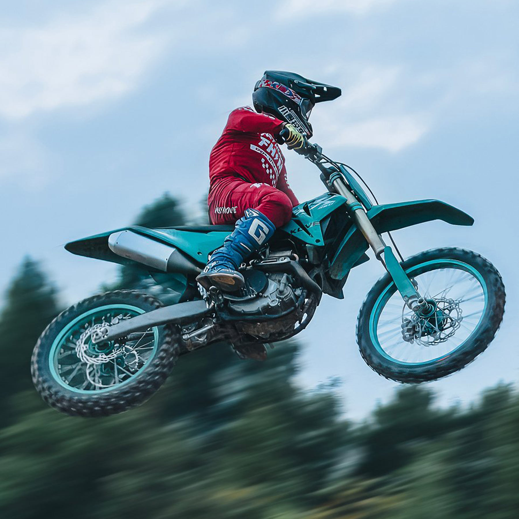 Das MX450 ist mit einer voll einstellbaren Vorderraddämpfung und einem Hinterraddämpfer mit externem Gasbehälter ausgestattet, sodass Sie die perfekte Balance zwischen Komfort und Feedback einstellen können. Mit 310 mm Federweg vorne und 117 mm Federweg hinten absorbiert es selbst große Stöße und hält das Fahrwerk auch in unwegsamem Gelände stabil.