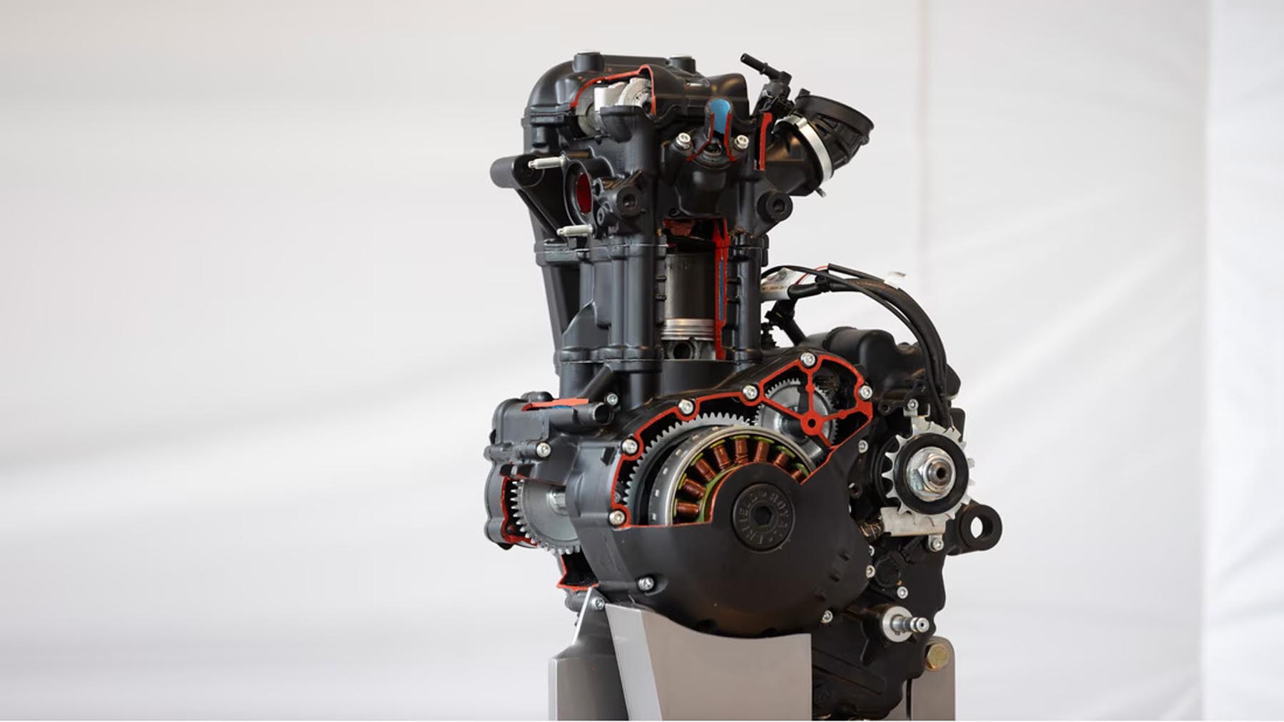 Als echten Roadster möchte Royal Enfield die neue Guerrilla 450 darstellen und verstanden wissen. Roadster, also ein Motorrad ohne Schnickschnack mit Retro-Charme, so gesehen die Essenz des Motorrads, könnte jemand folgern. Zumindest der Motor erfüllt das: Weniger Motor als ein Einzylinder kann ein Hubkolbenmotor nicht sein. 452 Kubikzentimeter Hubraum hat der Single, die sich aus einer Bohrung von 84 Millimeter und einem Hub von 81,5 Millimeter ergeben. Und da langer Hub nicht gerne dreht, überraschen die relativ niedrigen Drehzahlen für Leistung und Drehmoment kaum.